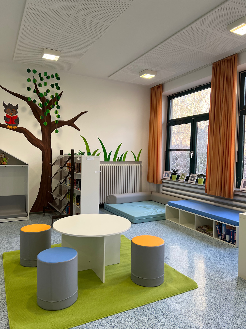 Unsere Schulflure sind neu gestaltet worden. Es gibt nun bunte Spinte, befestigte Schuhregale und tolle Sitzgelegenheiten für AGs und Gruppenarbeiten.